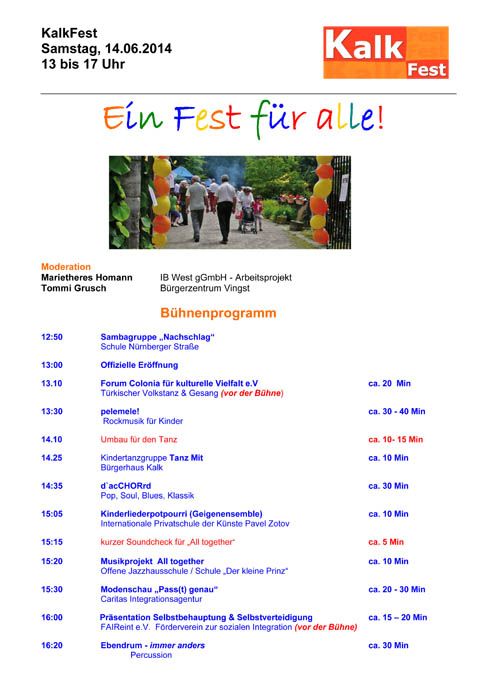 Kalk Fest 2014 - Ein Fest fur alle 14.06.2014 - 13:00 Uhr bis 17:00 Uhr